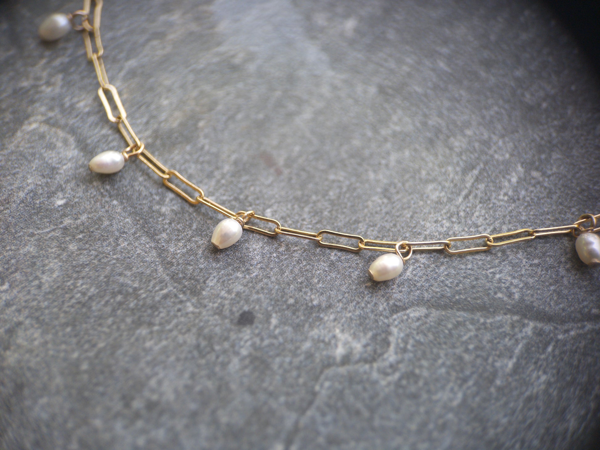 A timeless design with a modern twist, this gold-filled necklace features lustrous pearls that sways gracefully as you move