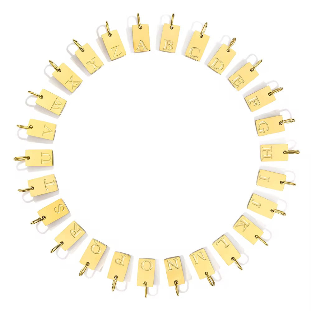 Dainty 316L stainless steel letter plate charm — a minimalist piece perfect for adding a personal touch to your jewelry. Wear it solo or mix and match with other charms.