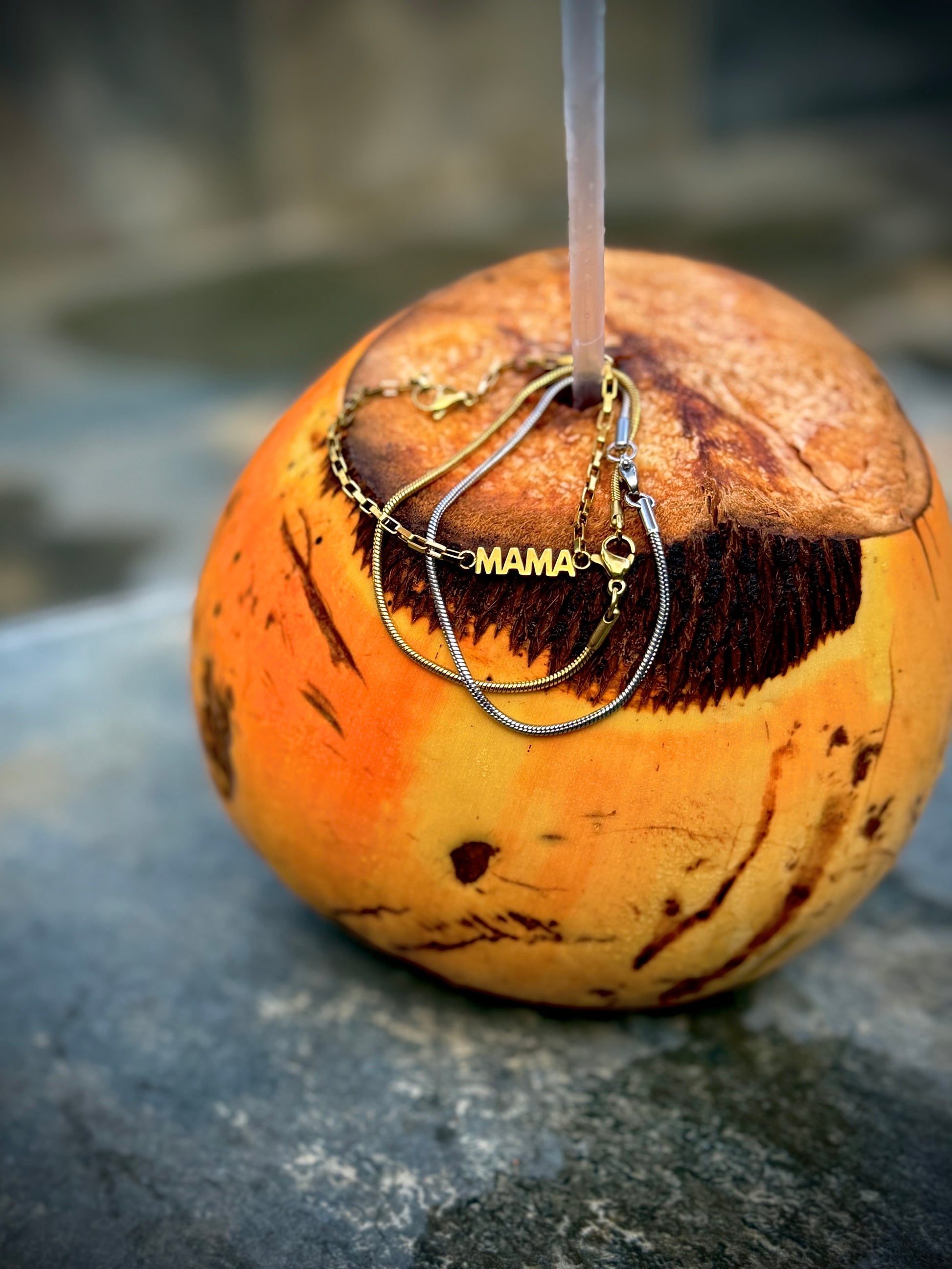 This waterproof Mama bracelet or Anklet features a sleek paperclip chain measuring 16 cm with a 6 cm (M-XL) extension. A heartfelt piece to celebrate motherhood, it’s both meaningful and effortlessly chic.