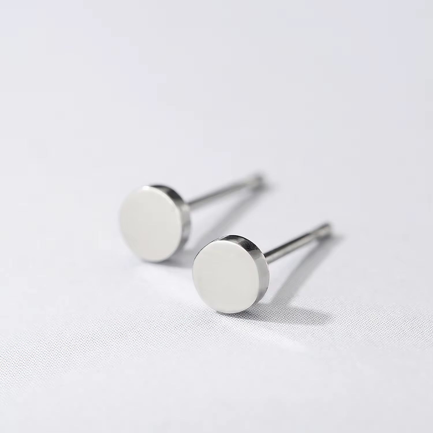 Classic and versatile, these 4mm round stud earrings are crafted from durable 316L stainless steel. Available in sleek steel or gold PVD finish, they’re waterproof, hypoallergenic, and perfect for everyday wear.